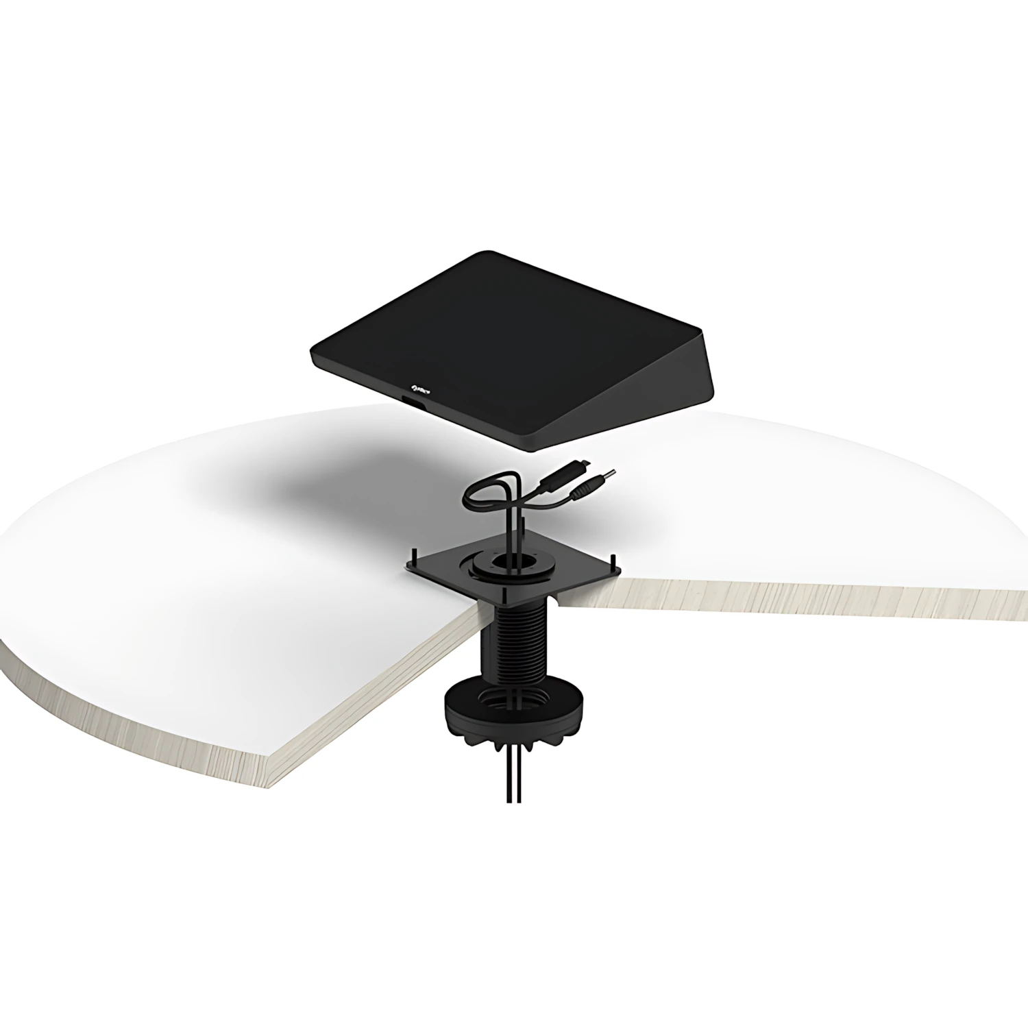 Созданное для столов с крепежными отверстиями, которые часто используются в конференц-залах, это низкопрофильное крепление надежно фиксирует контроллер Tap. Благодаря настольному креплению для Tap, которое дает возможность прокладывать кабели через крепежные отверстия, вы сможете поддерживать порядок на рабочем месте. Поскольку контроллер поворачивается на 180°, с ним можно удобно работать, находясь по любую сторону стола.